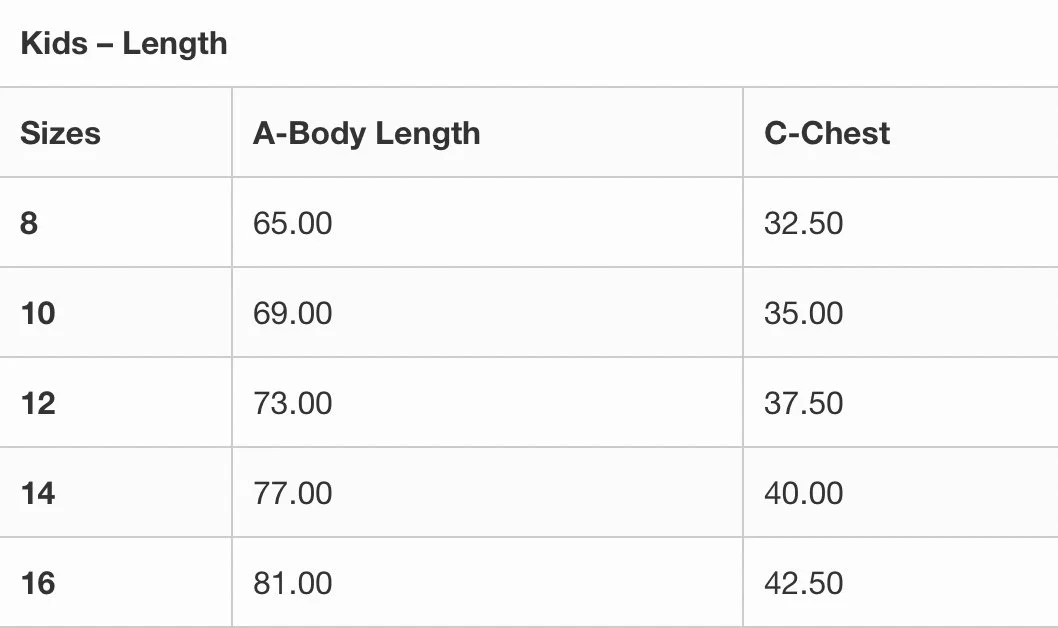 Kids Sizing