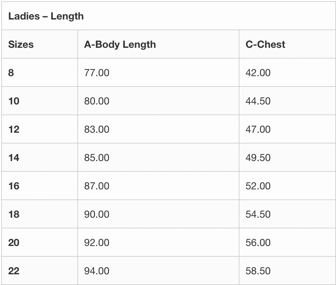 Ladies Sizing